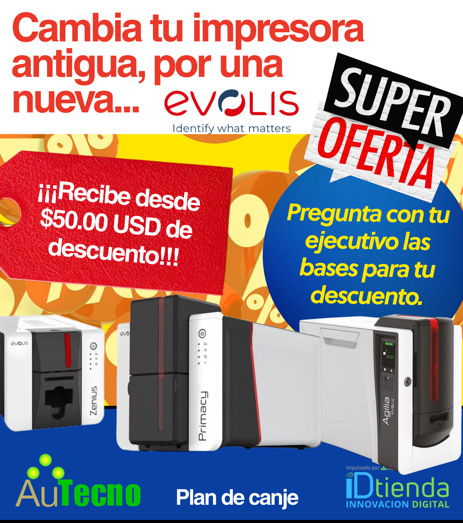 Evolis e IDTienda, te damos desde $50.00 USD de descuento al cambiar tu equipo por uno nuevo de la marca Evolis.